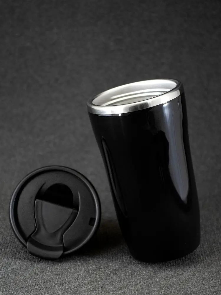Двухслойная конструкция из пластика снаружи и пищевой нержавеющей стали внутри. Герметичная завинчивающаяся крышка с откидным клапаном для питья. В отверстие в крышке можно вставить шнурок для удобного ношения стакана на руке. Шнурок в комплект не входит.