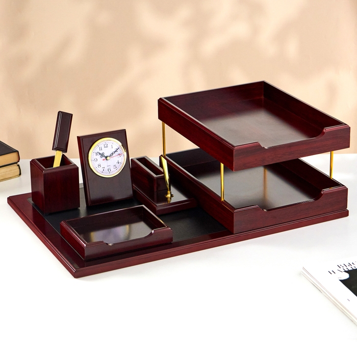Набор настольный 5в1 с часами, вишня