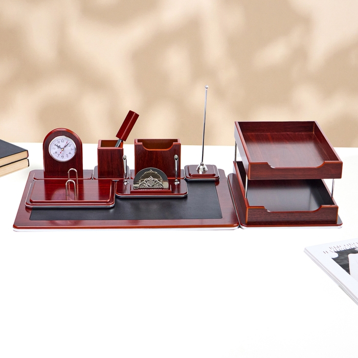 Набор настольный 7в1 (каранд-ца,подст д/ручек,визит-ца,часы Д-009,этажерка,нож канц,подст,)