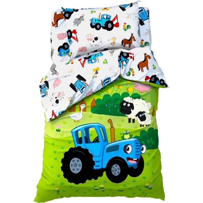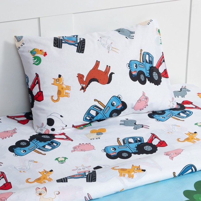 Постельное бельё 1,5 сп Синий трактор «Ферма», 143х215 см, 150х214 см, 50х70 см -1 шт., поплин 125 г/м2
