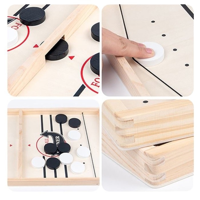 Главная цель игры - выбить все шайбы на поле соперника. Играется одной рукой. Фишки могут перемещаться только с помощью резинок. Каждый игрок начинает игру с 5 фишками. Необходимо оттянуть шайбой резинку, прицелиться и отправить её через центральное отверстие на поле соперника! Тот, кто быстрее перекинет все фишки на поле соперника, становится победителем игры.