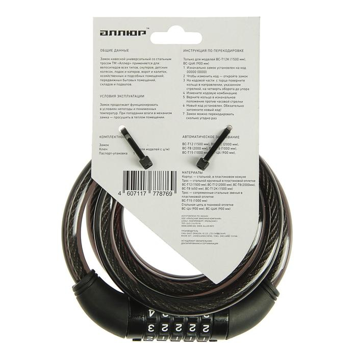 Замок навесной "АЛЛЮР" ВС-Т 12К, с тросом, 1500 мм