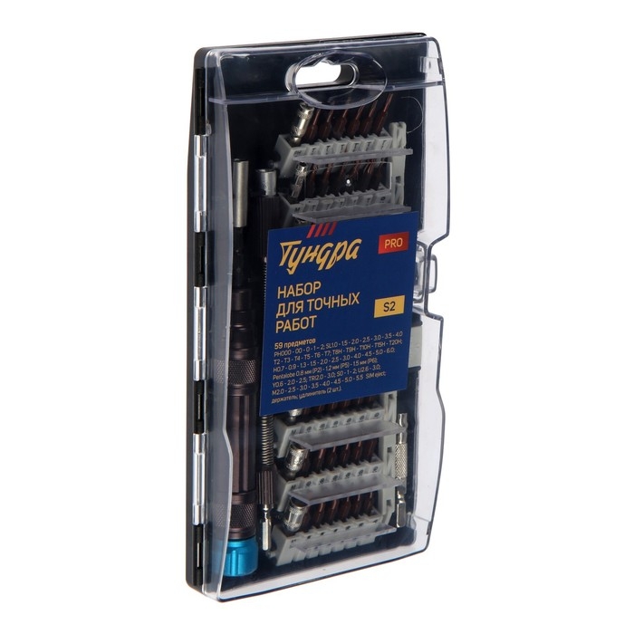 Набор для точных работ ТУНДРА ПРОФИ, сталь S2, телескоп. рукоятка, в кейсе, 59 предметов