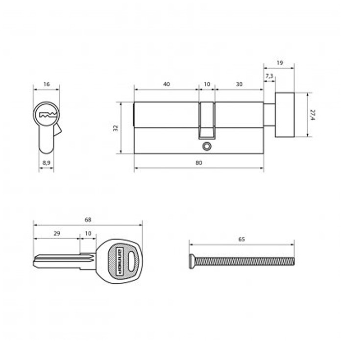 Цилиндровый механизм "АЛЛЮР" DL-02 80 СP, с перекодировкой, с вертушкой, 30х10х40 мм
