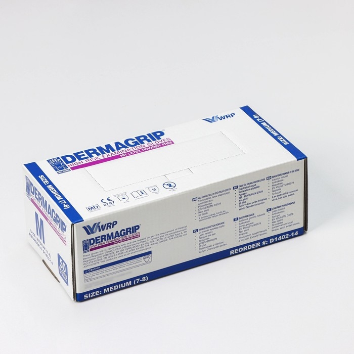 Перчатки латексные неопудренные High Risk, смотровые, нестерильные, текстурированные, размер M, 30 гр, 50 шт/уп (25 пар), цвет голубой