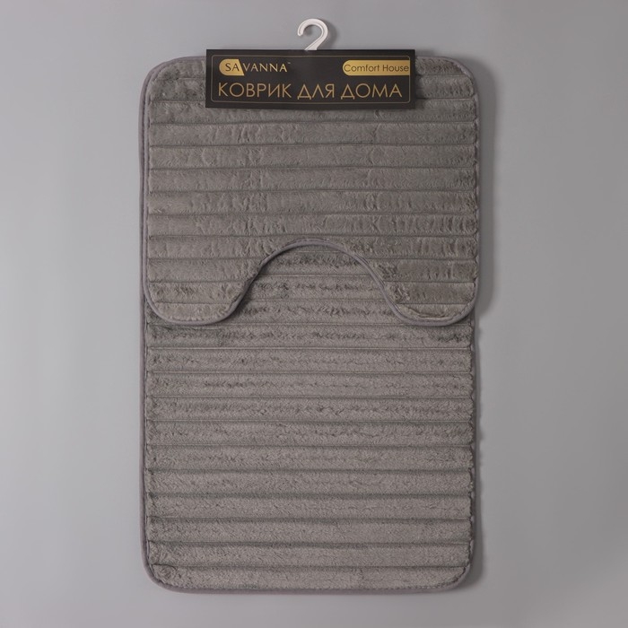 Коврики для ванной и туалета SAVANNA «Оливия», 2 шт, 40×50 см, 50×80 см, цвет серый