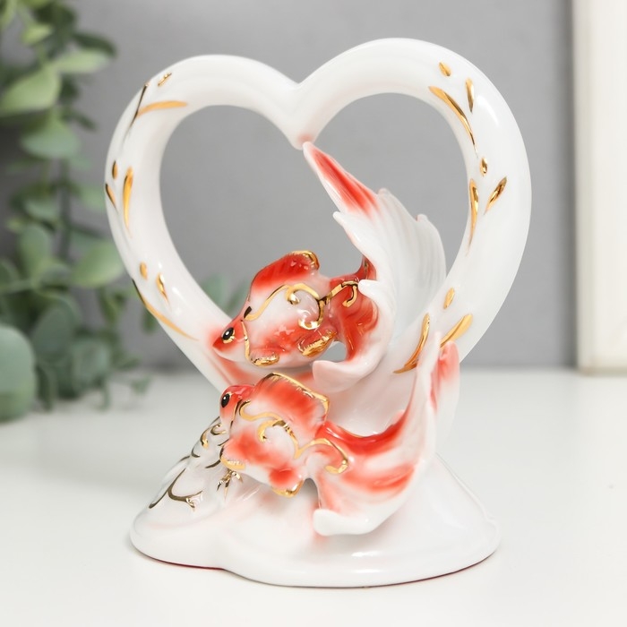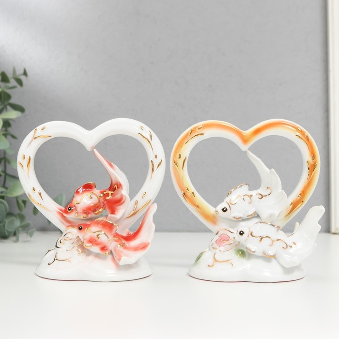 Сувенир керамика "Золотые рыбки в сердце" МИКС 12х7,5х12 см