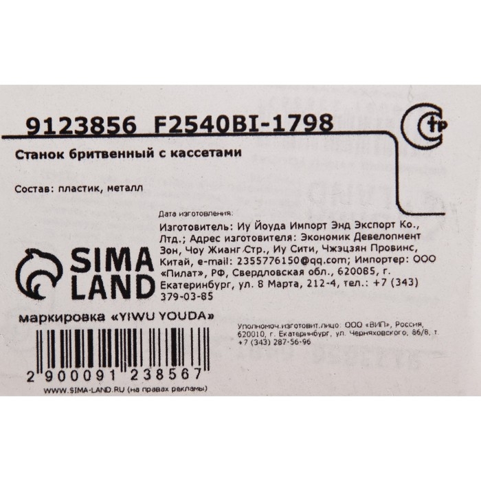 Стоимость упаковки товара составляет 40 руб.