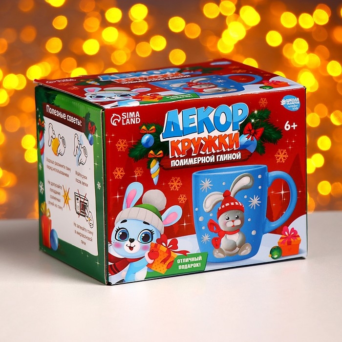 Декор кружки полимерной глиной на новый год «Зайка с подарком», новогодний набор для творчества