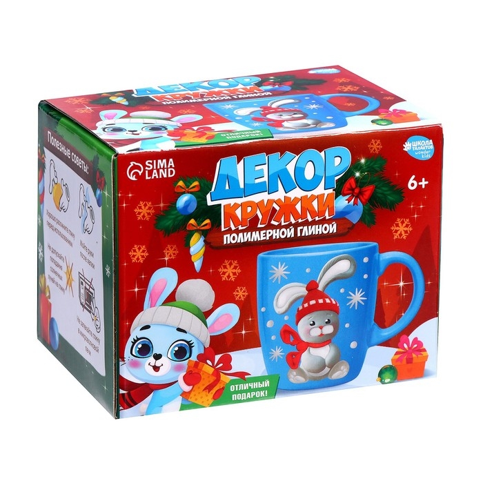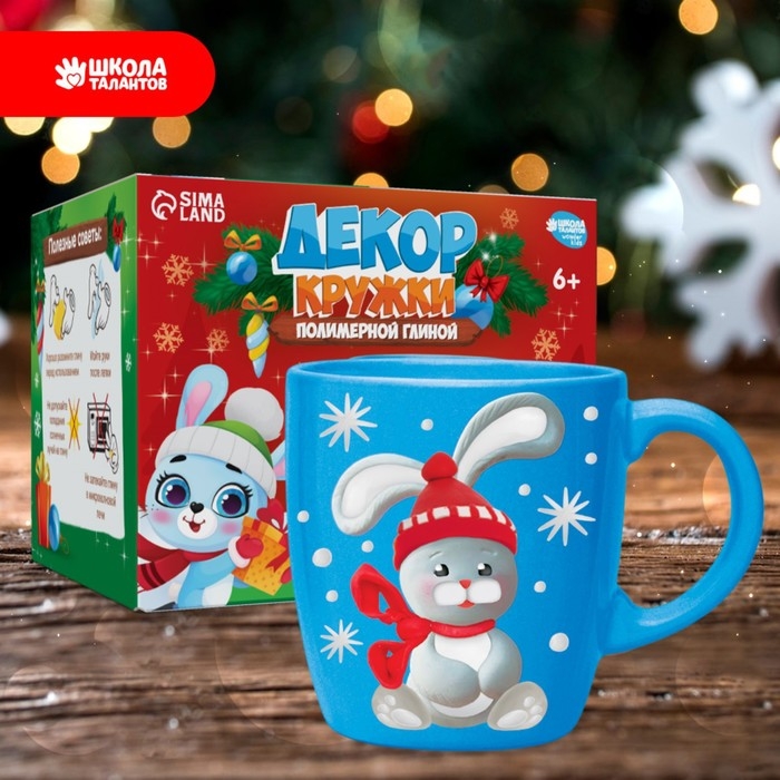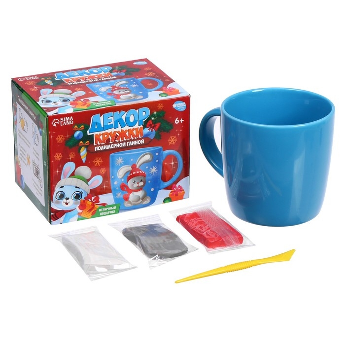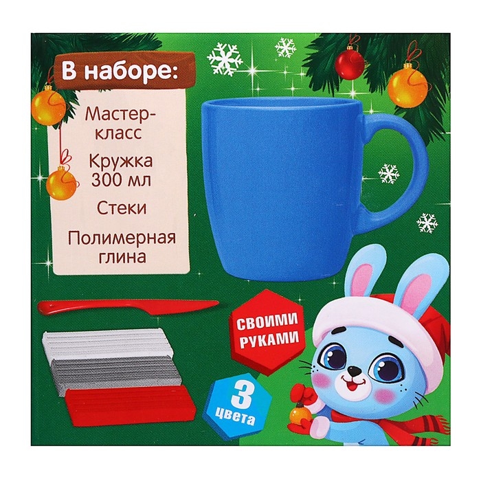Декор кружки полимерной глиной на новый год «Голубой зайка», новогодний набор для творчества