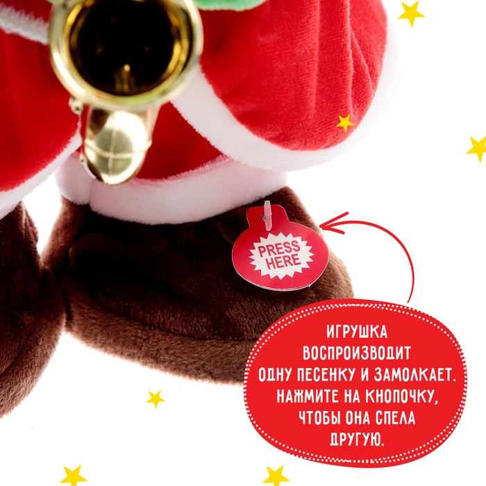 - Олень воспроизводит одну песню и замолкает. Чтобы он спел другую, нужно ещё раз нажать кнопку.