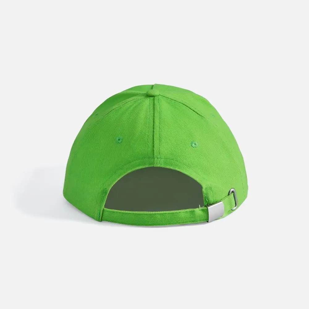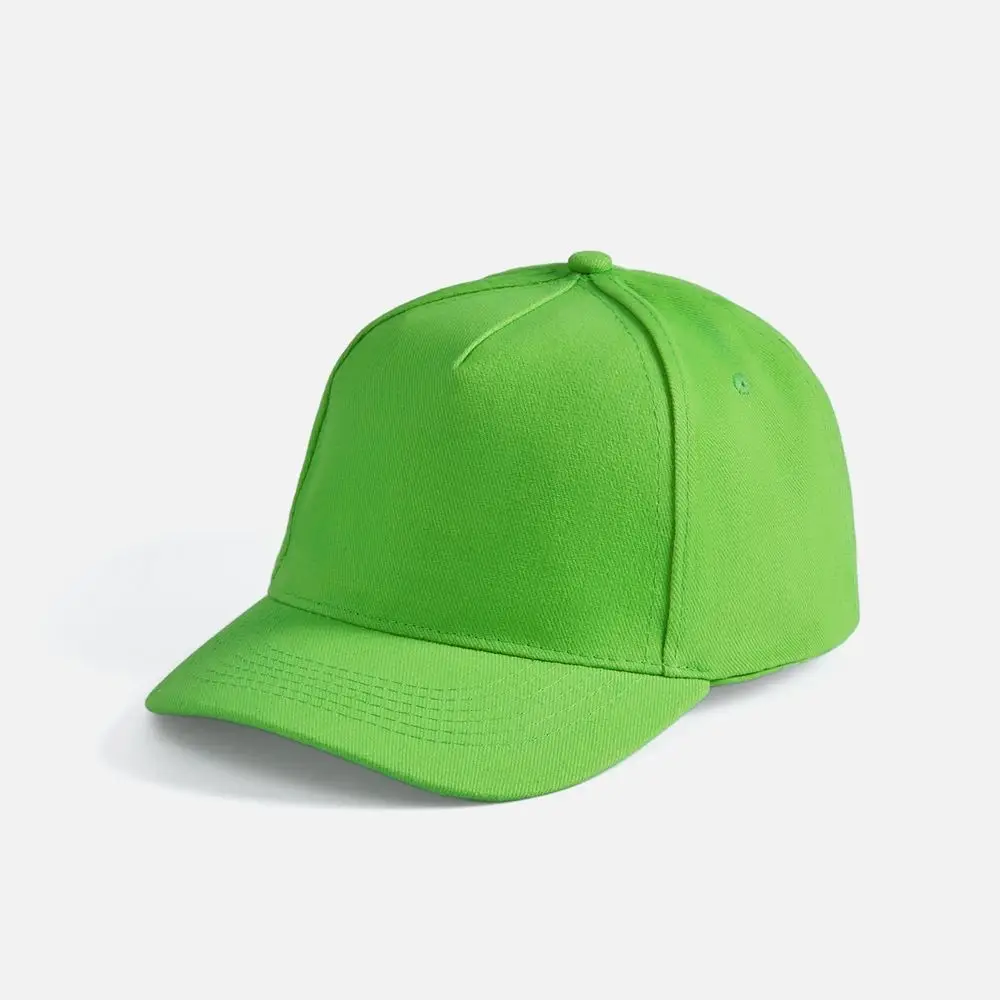 Модель бейсболки с 5-ю клиньями без лобового шва из плотного чесаного хлопка.