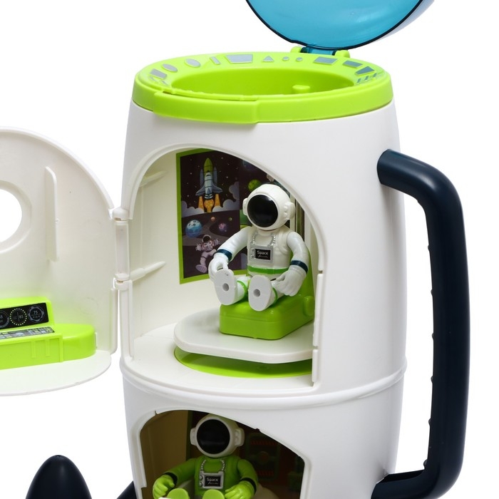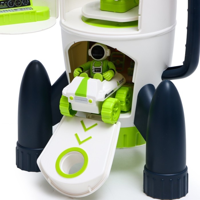 - Есть световые и звуковые эффекты: при нажатии на зелёную кнопку появляются свет и звук отсчёта и запуска ракеты. Для работы необходимо 2 батарейки типоразмера AA (в комплекте).