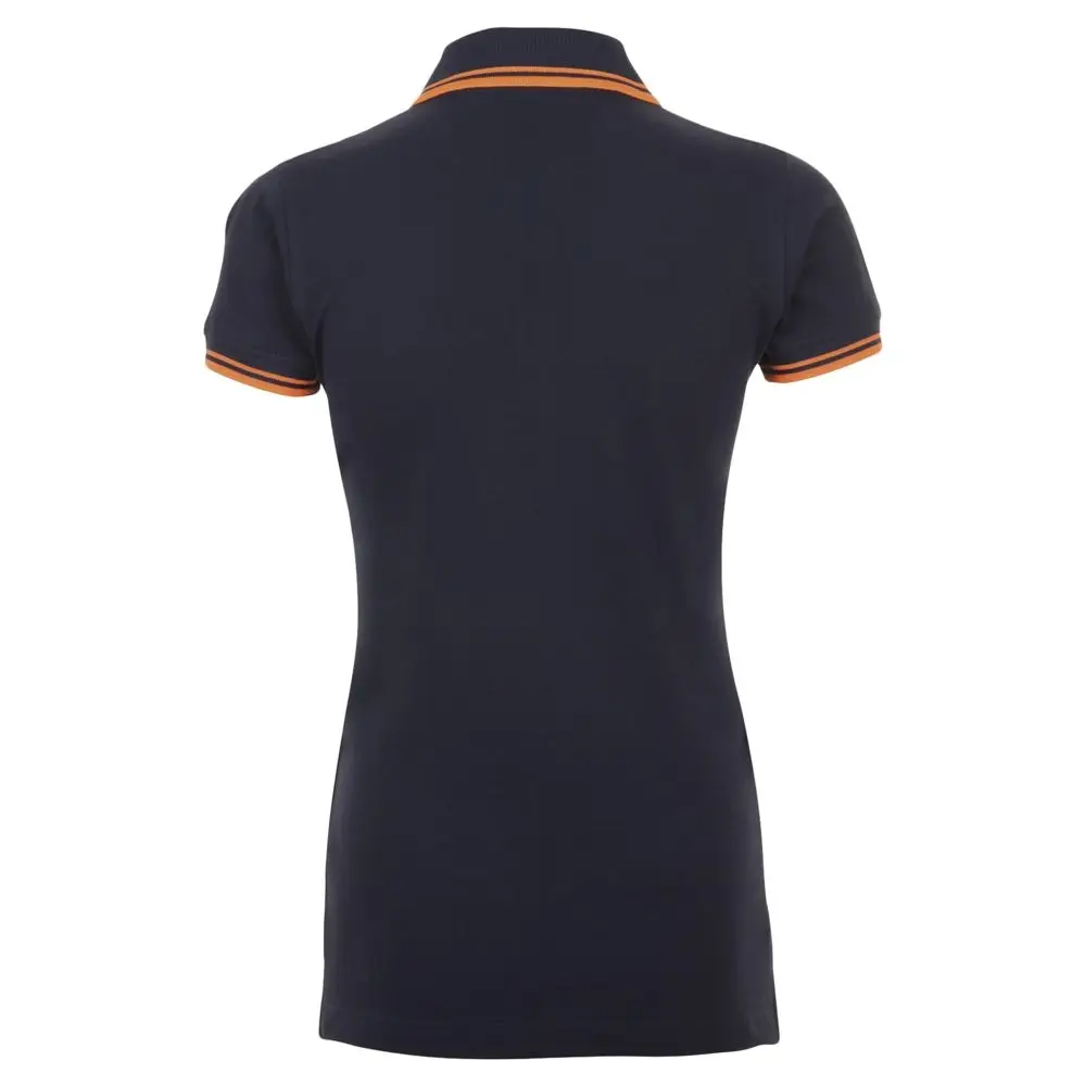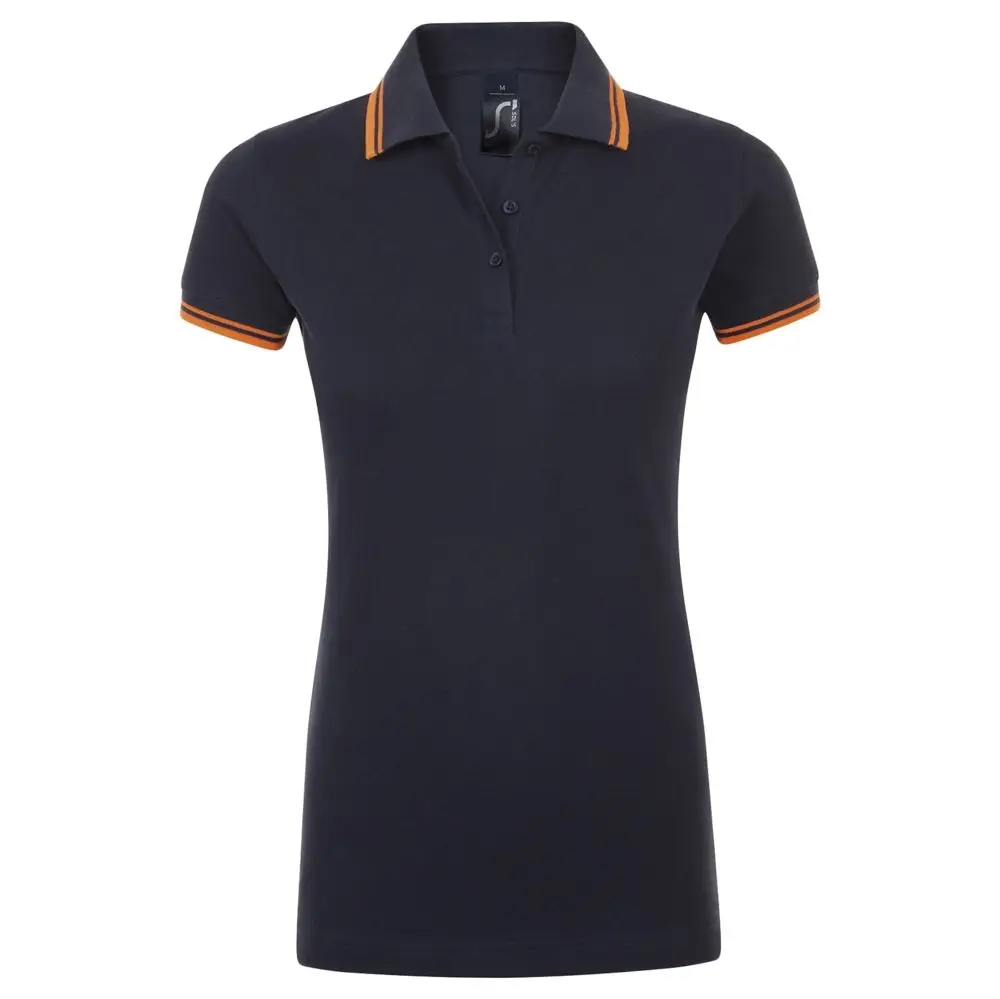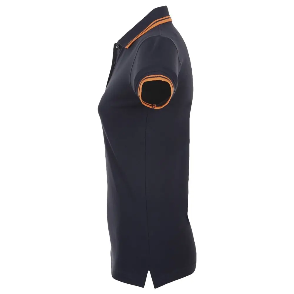 Рубашка поло женская Pasadena Women 200 с контрастной отделкой, темно-синяя (navy) с неоново-оранжевым, размер L