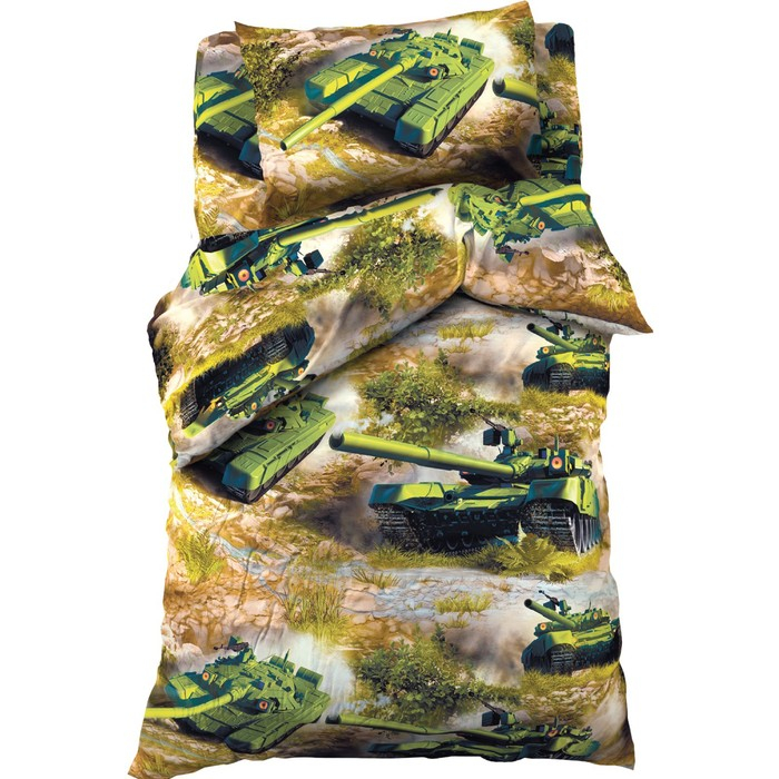 Постельное бельё «Этель» 1.5 сп Танки 143*215 см, 150*214 см, 50*70 см, бязь 125 г/м2