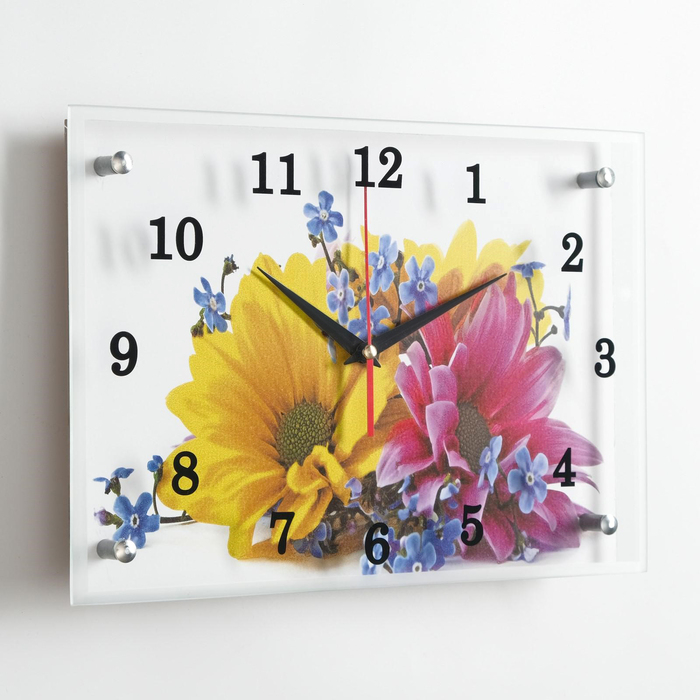 Часы-картина настенные, интерьерные "Два цветка", бесшумные, 25 х 35 см