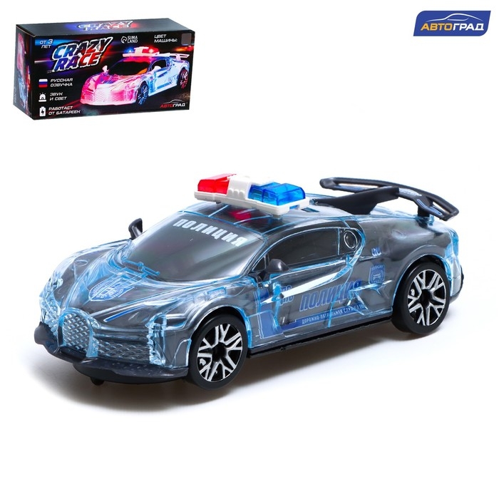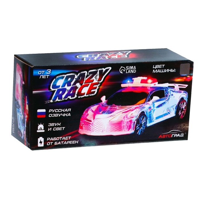 Машина «Crazy race. Полиция», русская озвучка, световые и звуковые эффекты, работает от батареек, цвет серый