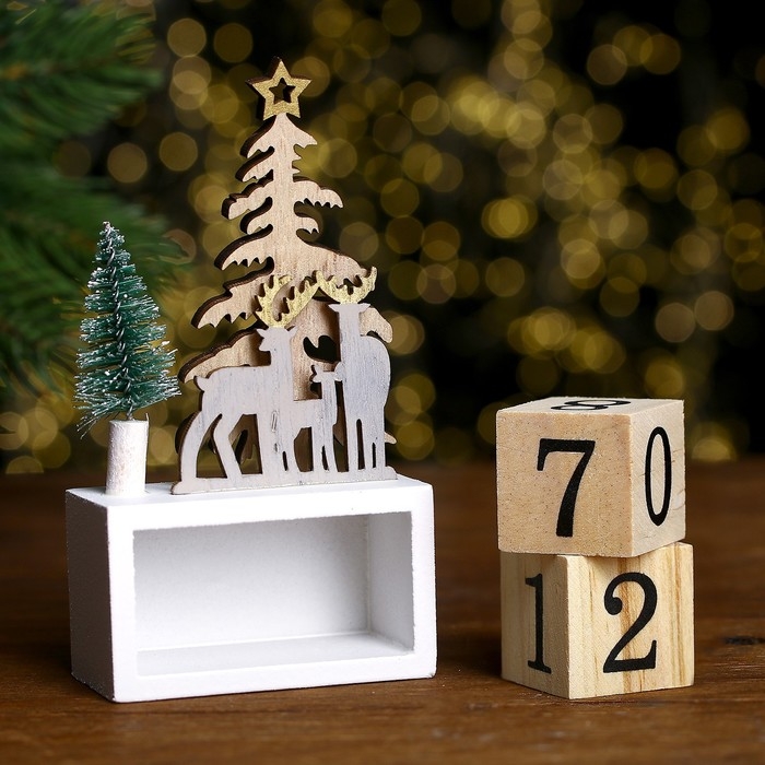 Вечный календарь «Ёлки и олени» 7 × 3,5 × 13 см