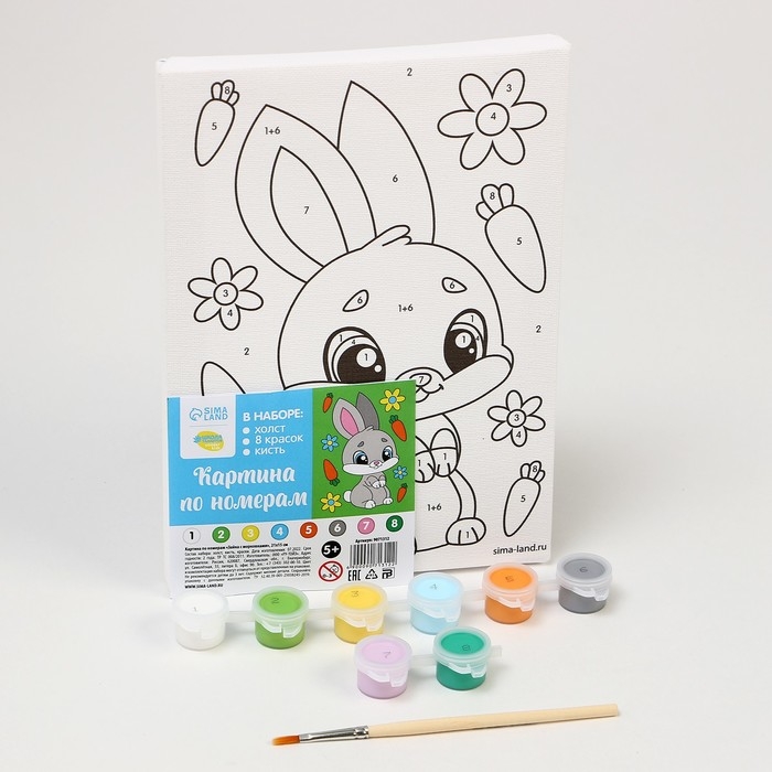 Картина по номерам для детей «Зайка с морковками», 21 х 15 см