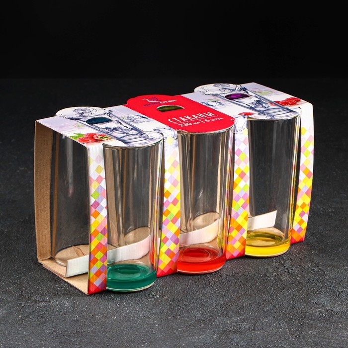 Набор стаканов «Микс», стеклянный, 230 мл, 6 шт