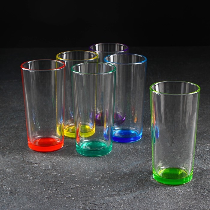 Набор стаканов для напитков состоит из 6 шт, объём 230 мл. Разноцветные стаканы сделаны из толстого качественного стекла. Набор стаканов идеально подходит для воды, сока, виски, коктейлей. Такие яркие стаканы поднимут вам и вашим гостям настроение.