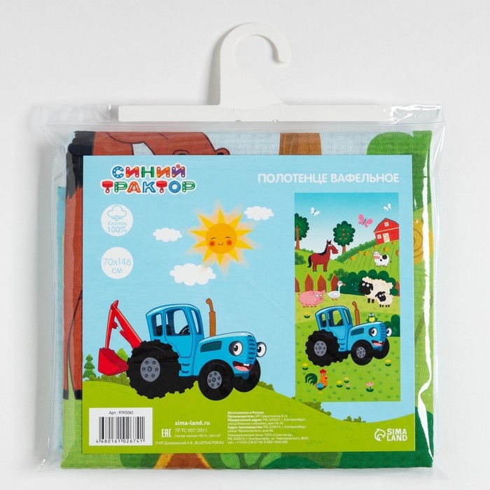 Полотенце детское Синий трактор «Веселая ферма» 70х146±2 см, 100% хлопок 160 гр/м2