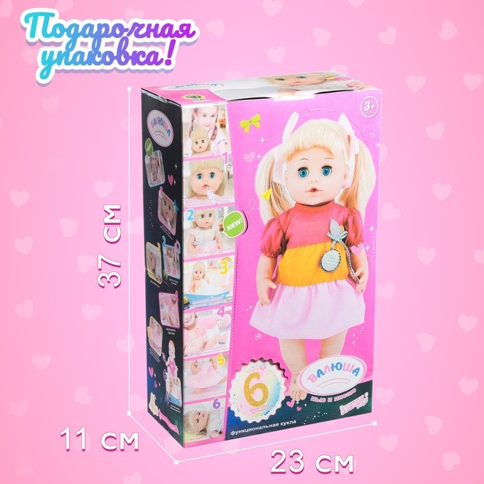 - Пьёт, писает напрямую (кнопки нет), есть горшок, бутылочка и тарелочка с ложкой для кормления куколки.