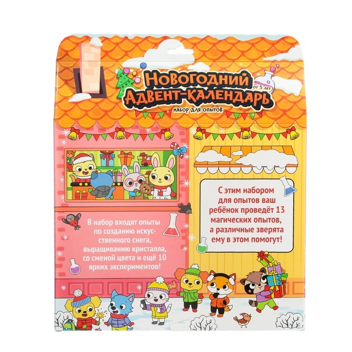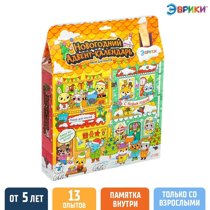 Адвент-календарь скрасит дни в ожидании праздника и поможет весело и с пользой провести время. Набор представляет собой коробку с 13 окошками. Новый день — это новое окошко, в котором находятся материалы для проведения опытов.