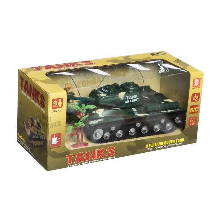 Дополнительные аксессуары придадут игровым сюжетам разнообразия. Поставьте дерево и солдата и разработайте победоносную тактику. Юный командир будет управлять танком с пульта. Подчиняясь командам, техника поедет вперёд, назад и развернётся при движении задним ходом.