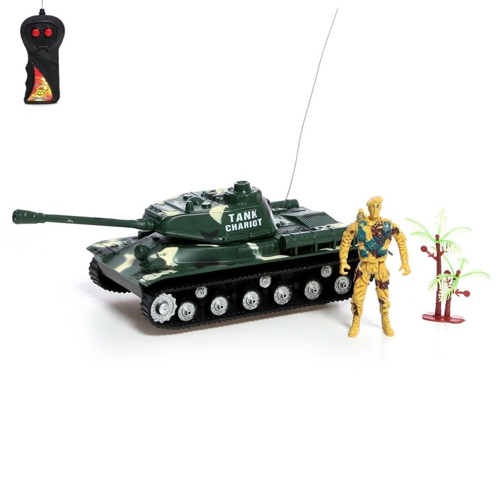 Танк радиоуправляемый «Защитник», с фигуркой солдата, работает от батареек, цвет зелёный