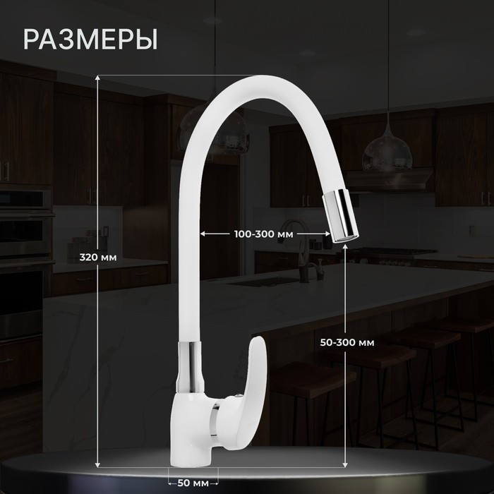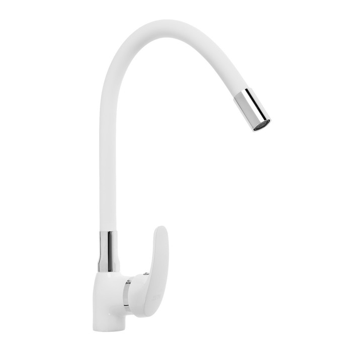 Смеситель для кухни ZEIN Z5973, гибкий силиконовый излив, картридж 40 мм, латунь, белый