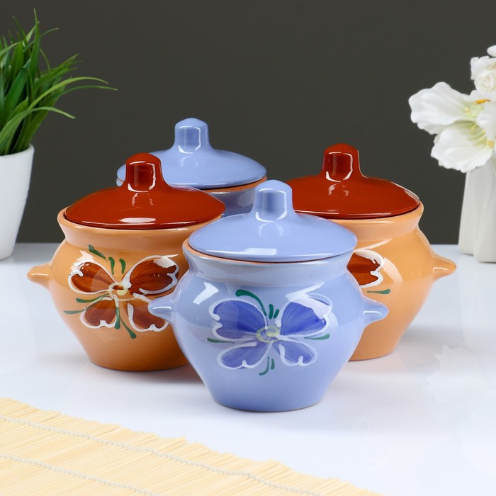 Набор горшков №5 с ручками 4х0,5л, МИКС