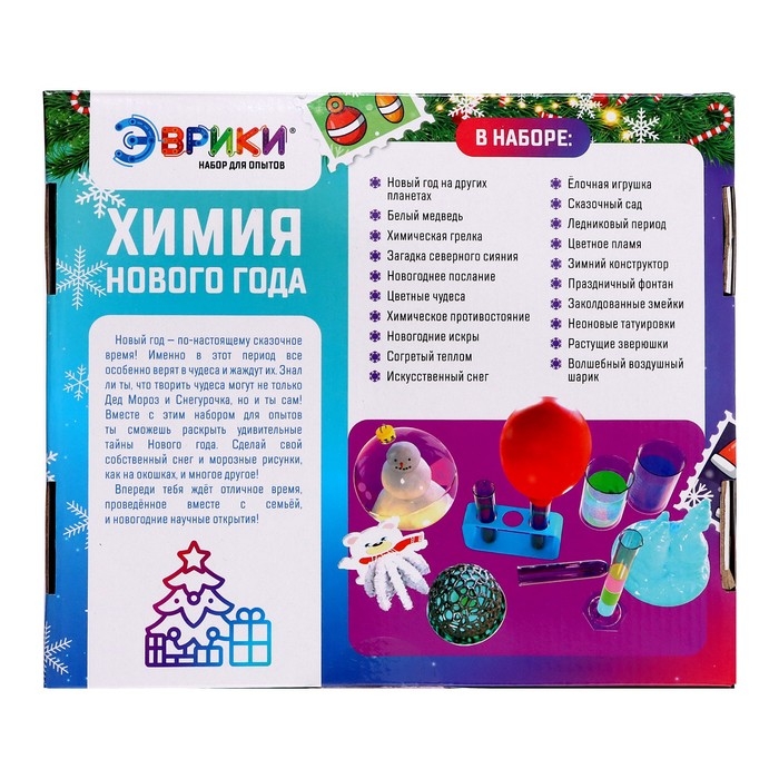 Набор для опытов «Эврики» поможет провести простые эксперименты и познакомиться со свойствами различных химических элементов. Ребёнок сам проведёт 20 опытов и удивит друзей!