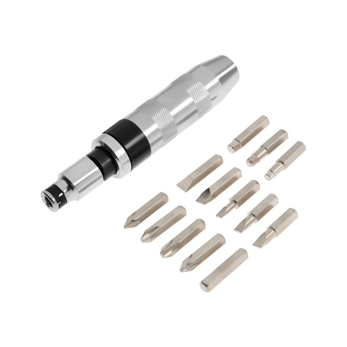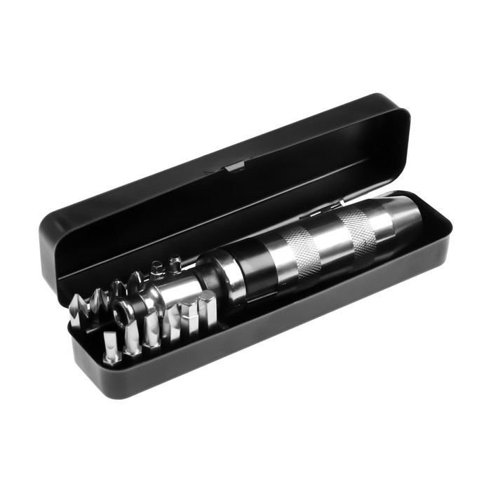 Отвертка ударно-поворотная ТУНДРА 1/2", с битами 13 шт., реверс, метал. рукоятка, кейс