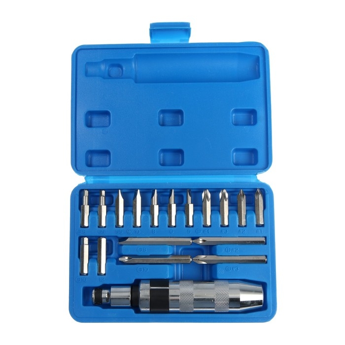 Отвертка ударно-поворотная ТУНДРА 1/2", с битами 17 шт., реверс, метал. рукоятка, кейс