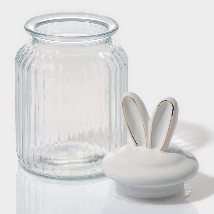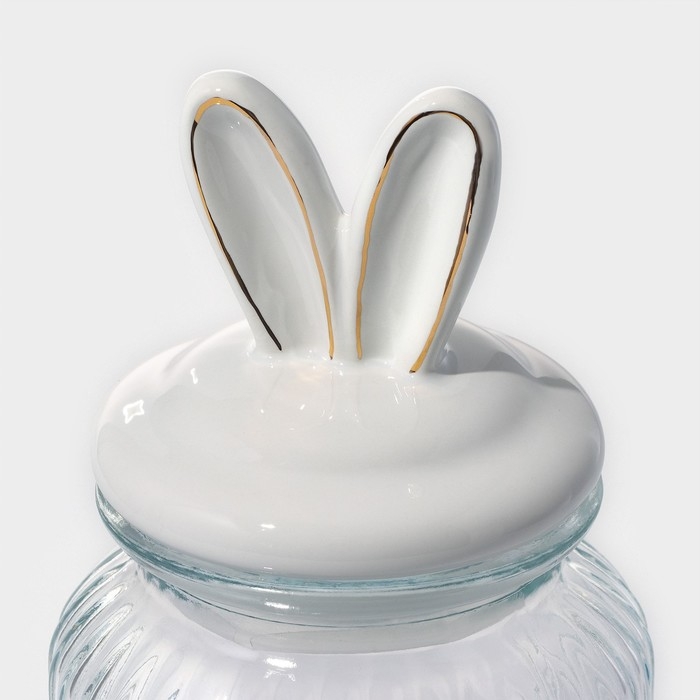 Банка стеклянная для хранения сыпучих продуктов Доляна «Зайка в золотом», 950 мл, с керамической крышкой