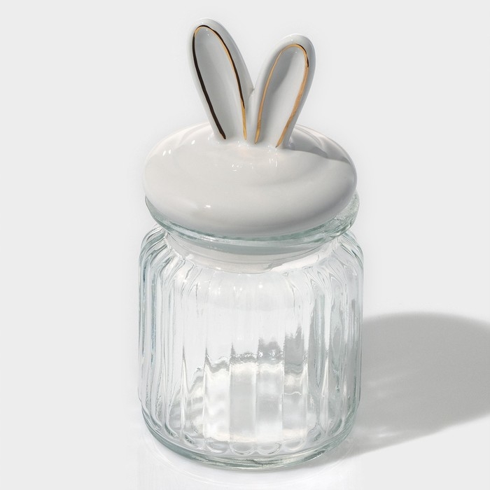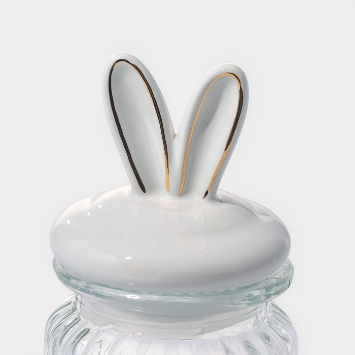 Банка стеклянная для хранения сыпучих продуктов Доляна «Зайка в золотом», 230 мл, с керамической крышкой