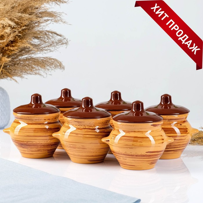 Набор горшков №5 с ручками 6х0,5л, оранжевая полоска