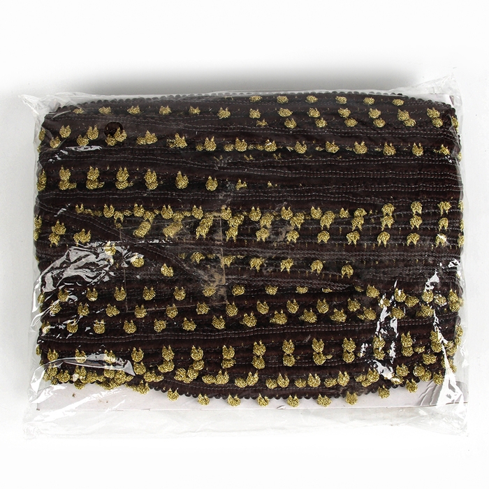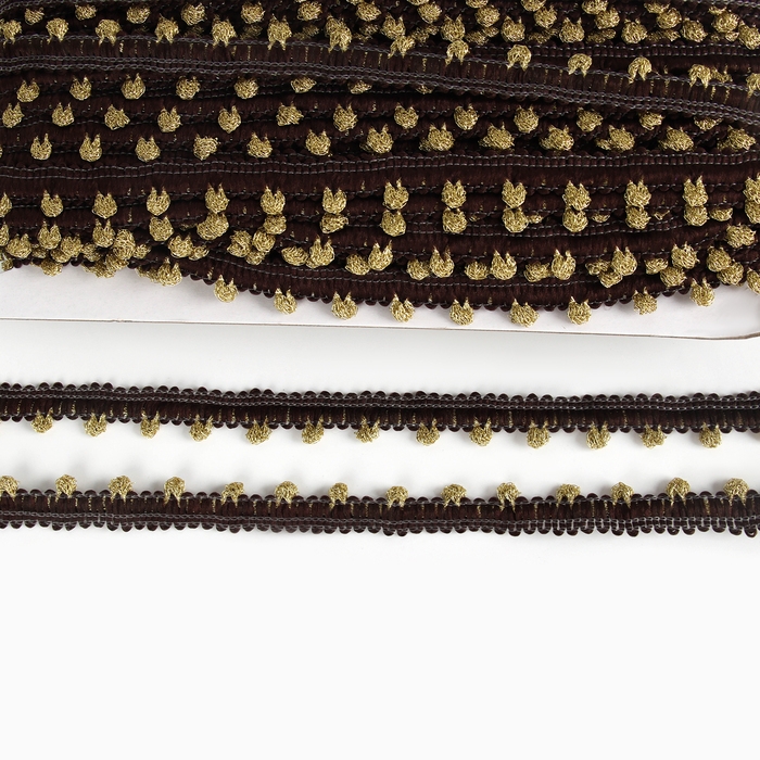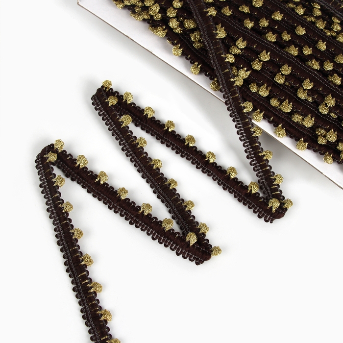 Тесьма коричневая с золотом, ширина 1,4 см, по 50 м