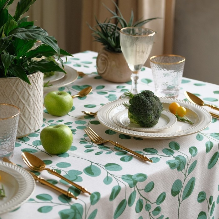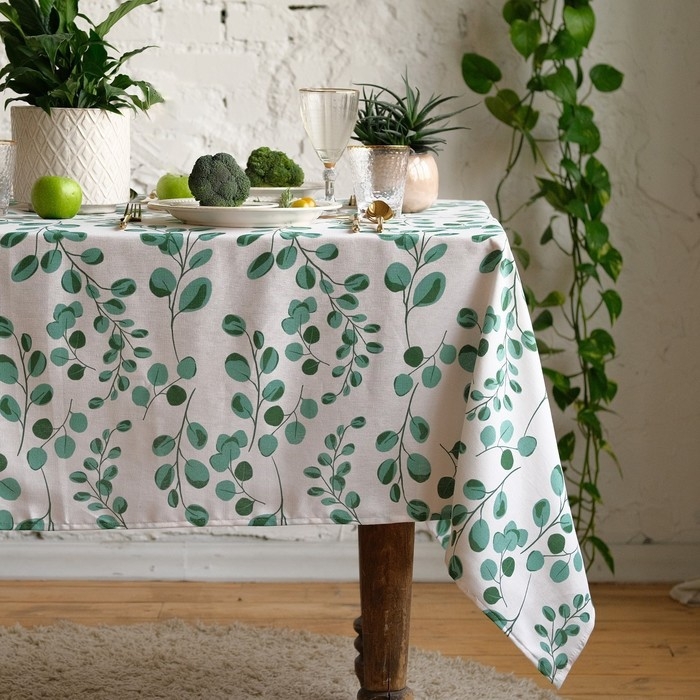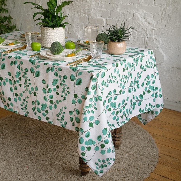 Скатерть Доляна «Эвкалипт» 149х180 см, 100% хл, рогожка 164 г/м2