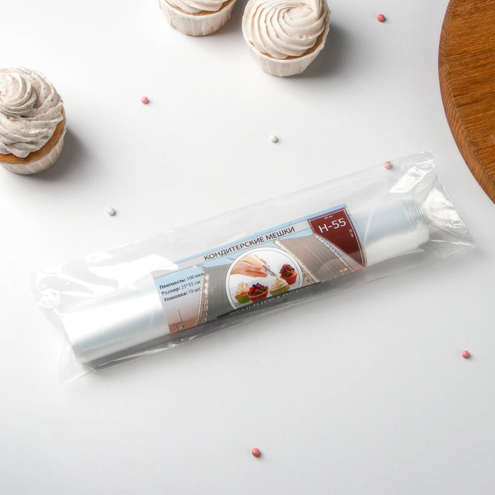 Мешок кондитерский h=55 см, рулон 10 шт, 55×25 см, цвет прозрачный
