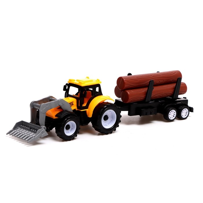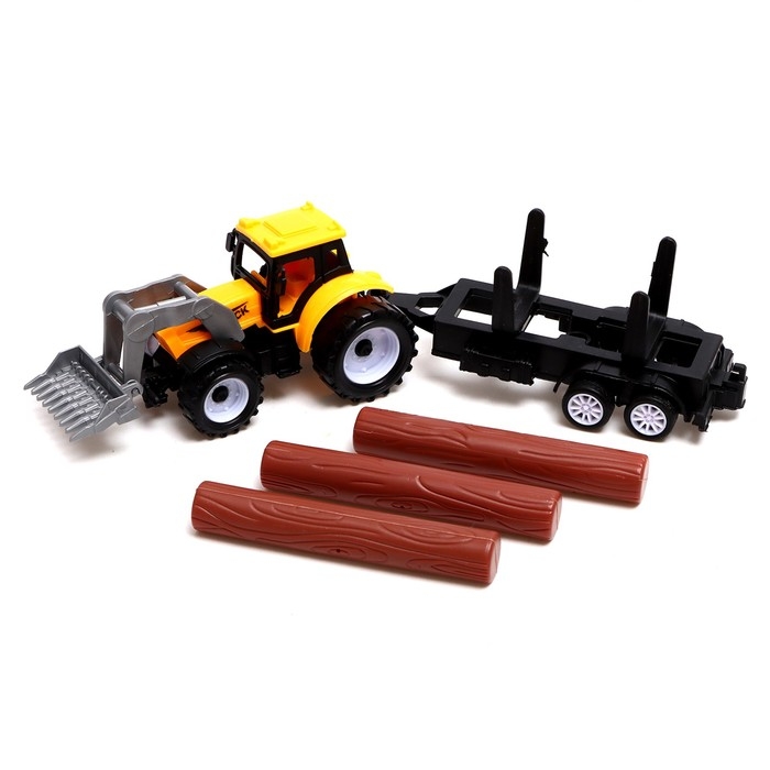 - В комплекте есть три бревна и маленький трактор, их можно легко снять с прицепа.