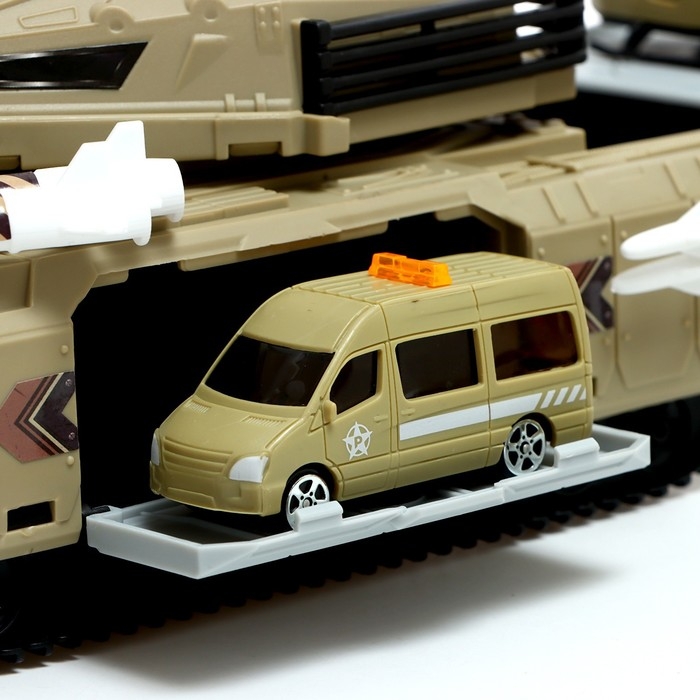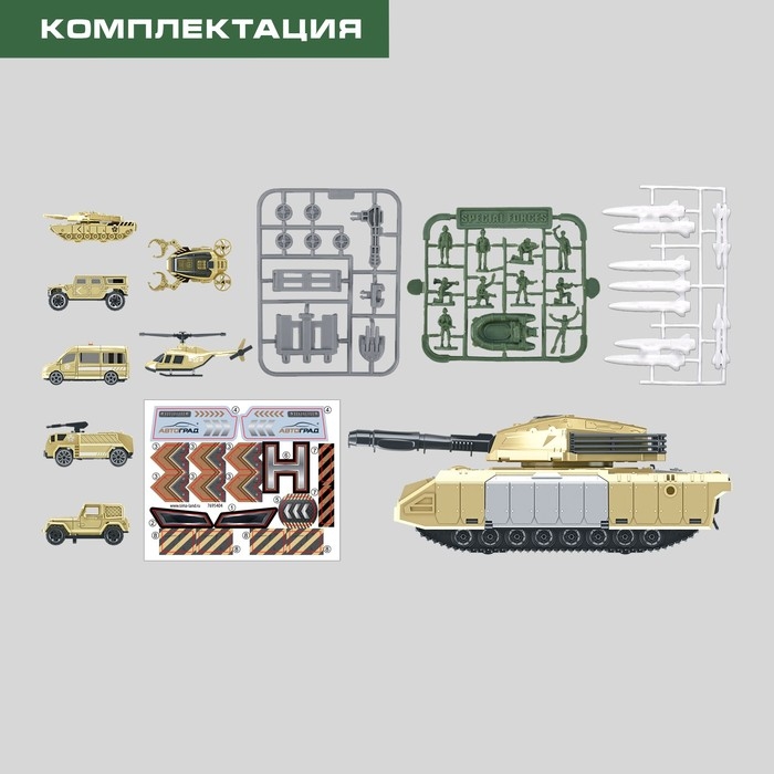 - Транспортный комплекс представляет собой танк, в который помещаются 5 машинок и 2 вертолёта.