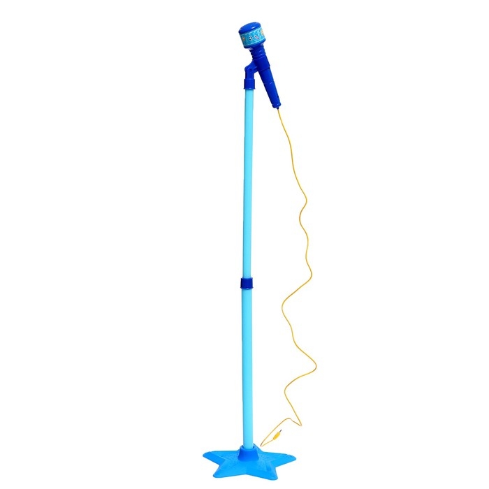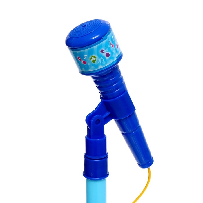 - Высота стойки микрофона регулируется, это даёт возможность подстраивать её под рост малыша. Максимальная высота — 120 см, минимальная — 80 см. Микрофон усиливает звук.