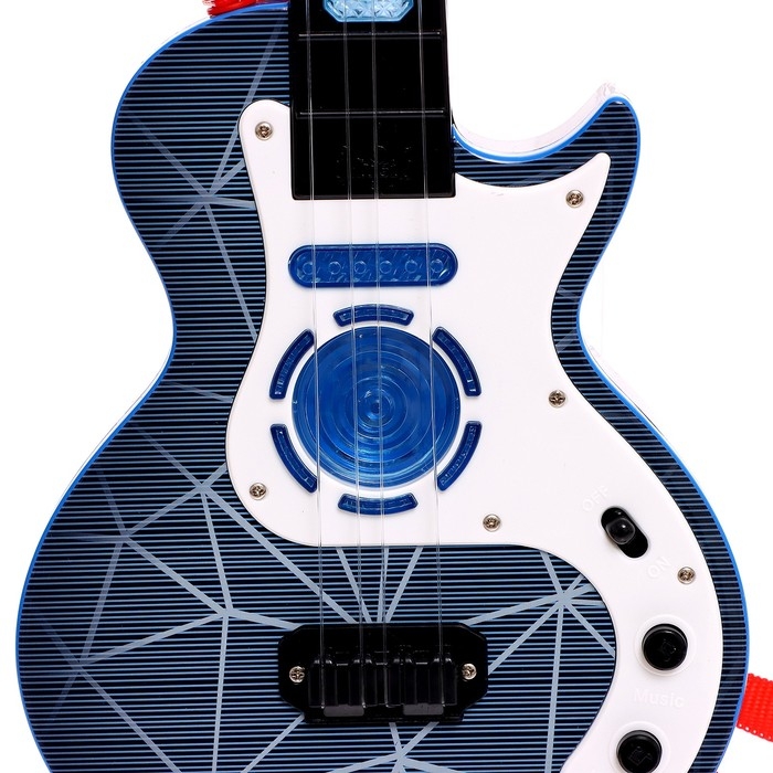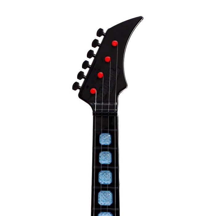 - На грифе гитары есть стёклышки со световыми эффектами. Кнопки не нажимаются и звуки не издают.