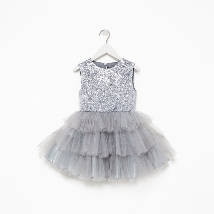 Платье для девочки с пайетками KAFTAN, размер 34 (122-128), цвет серый
