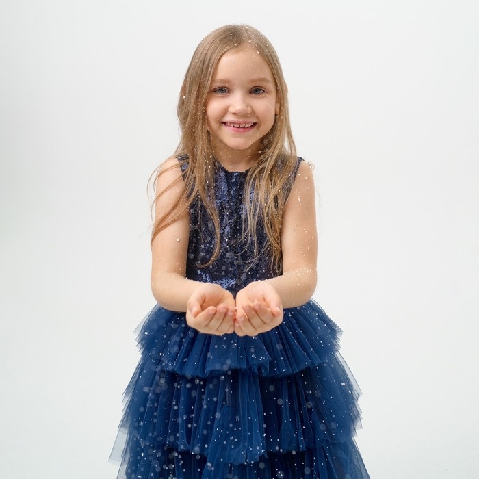 Платье для девочки с пайетками KAFTAN, размер 34 (122-128), цвет синий