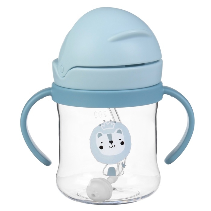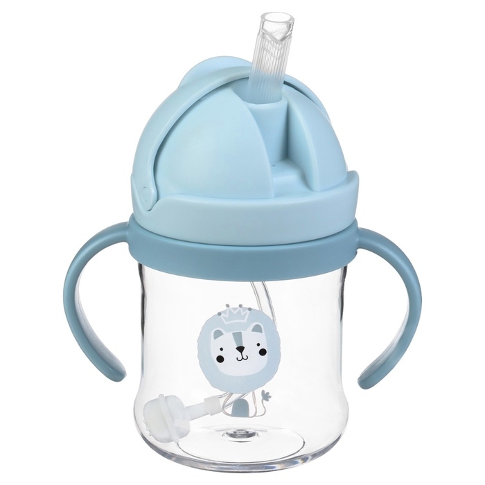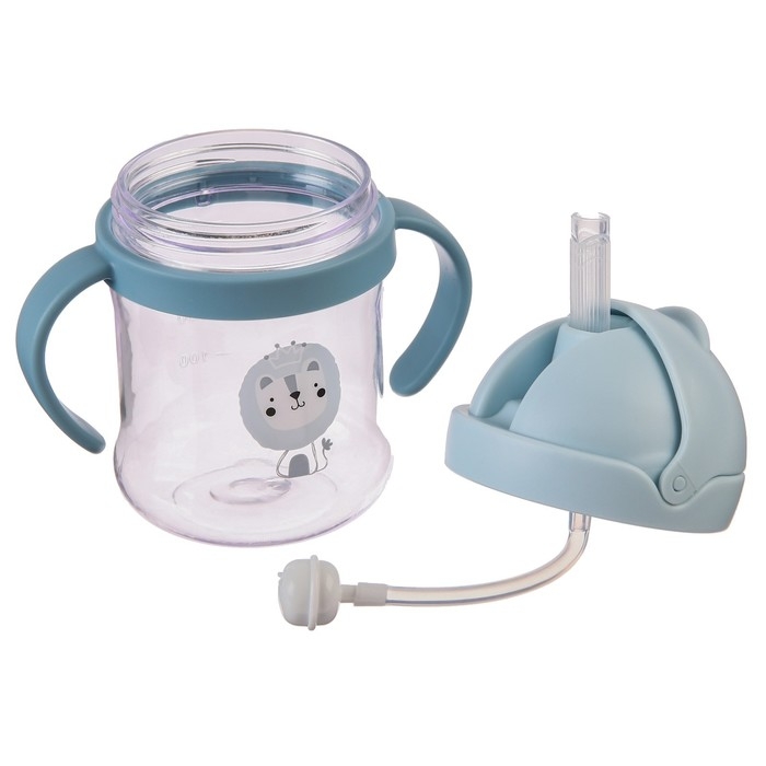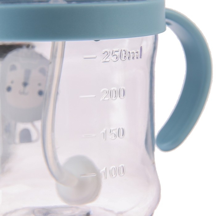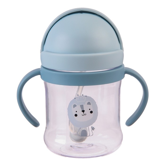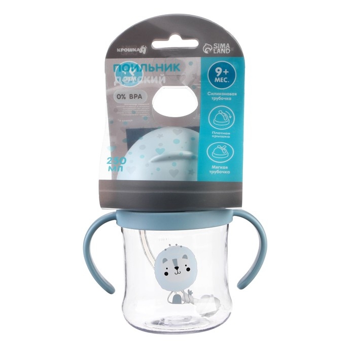 Поильник - непроливайка детский с силиконовой трубочкой, 250 мл., с ручками, цвет голубой