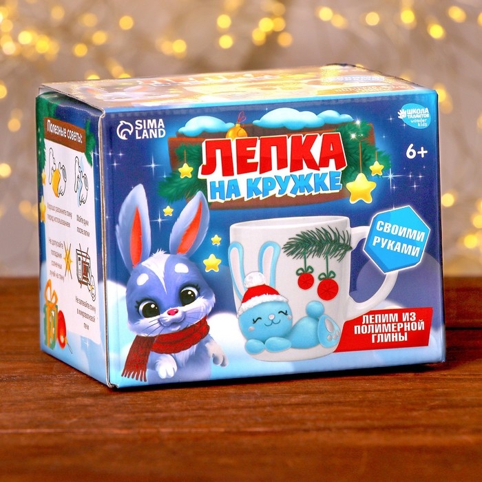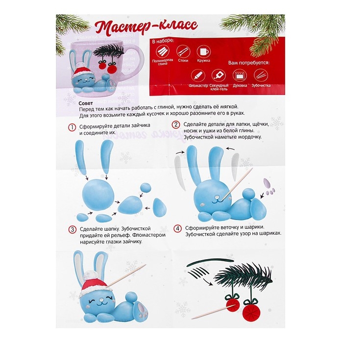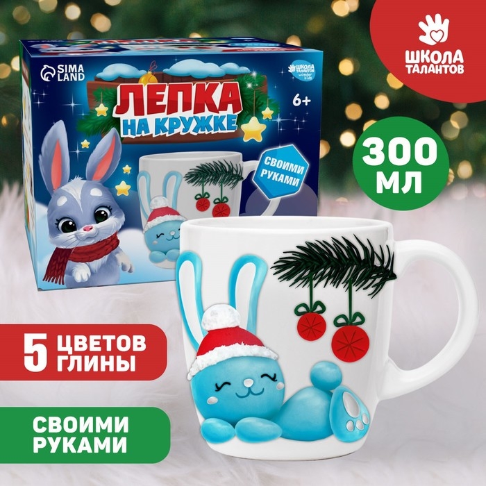 Декор кружки полимерной глиной на новый год «Голубой зайка», новогодний набор для творчества