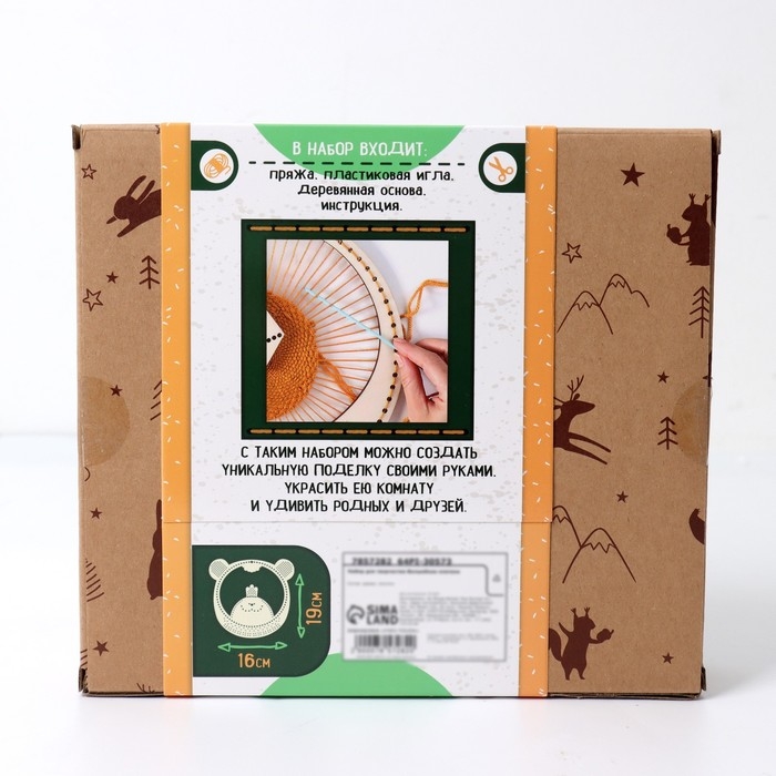 С этим набором вы познакомитесь с техникой ручного плетения и создадите тёплое и яркое панно, которое украсит ваш дом и сделает его уютнее.